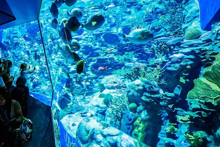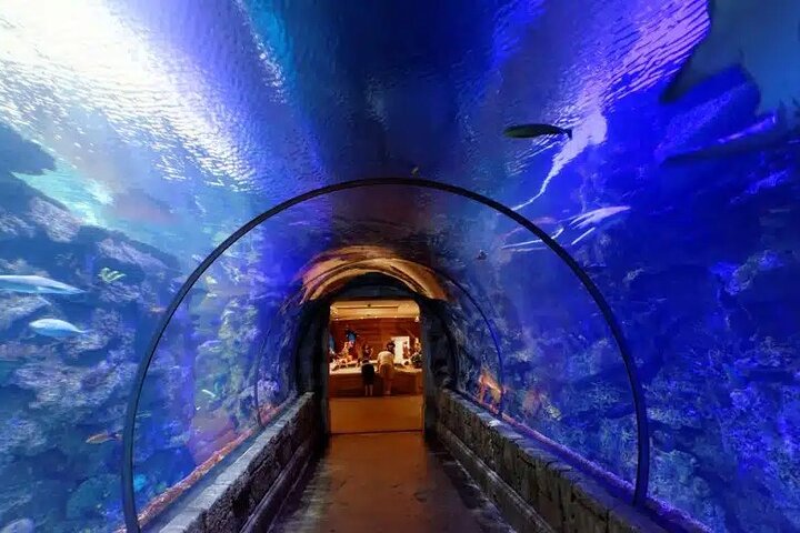 Beginnen Sie mit dem 24 Meter langen Unterwassertunnel, um die beeindruckende Unterwasserwelt hautnah zu erleben.